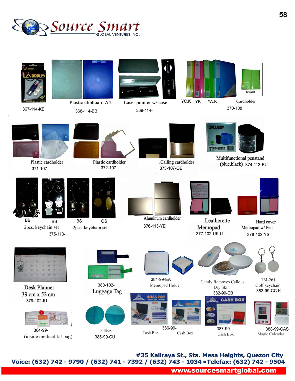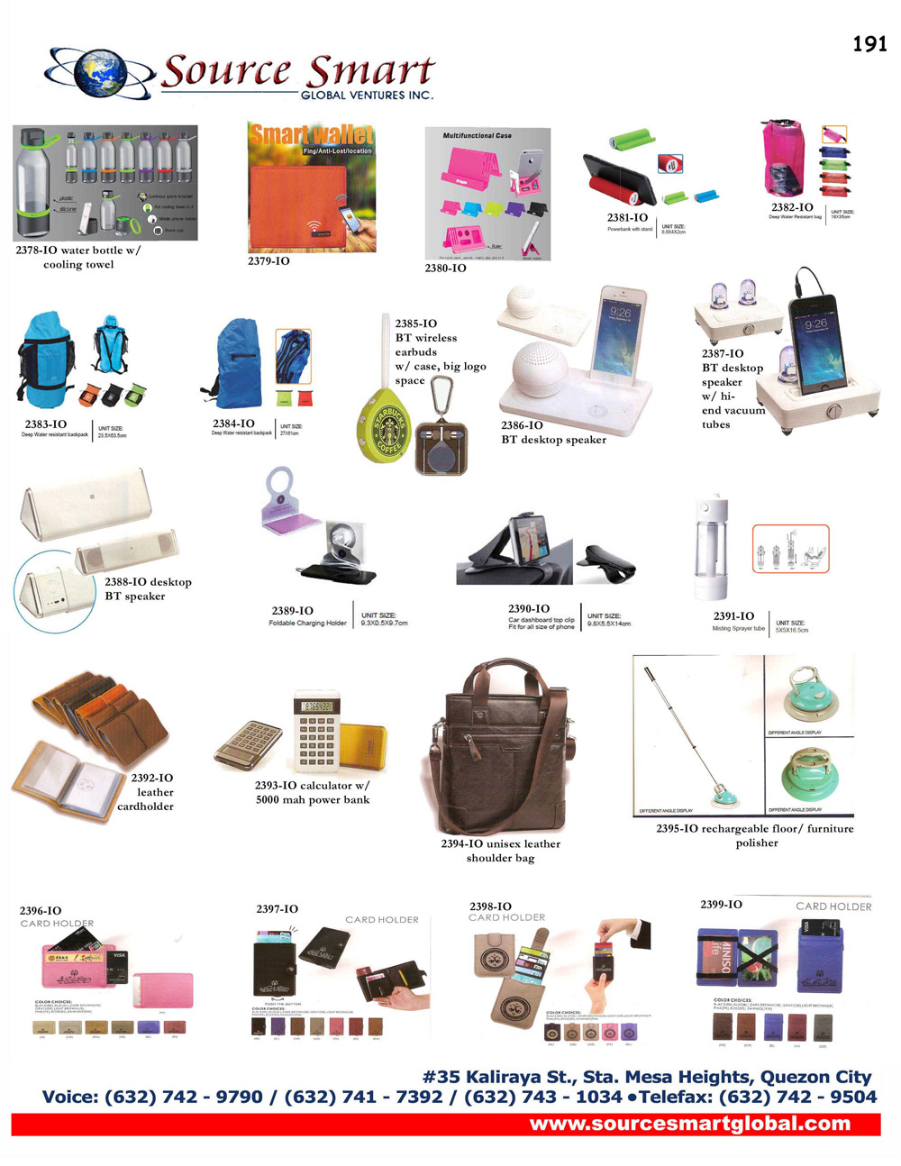 Source Smart Global Venture Inc. is a marketing service and support company focused on providing corporate giveaways, promotional items, advertising and design services, outdoor transit ad service, website design and development, as well as audio and video production, conceptualization and editing services to companies of various industries.